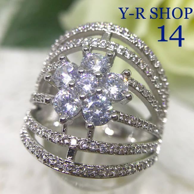 - 14号★ホワイトトパーズたっぷりのお花デザインゴージャスリング★レディース指輪シルバーアクセサリー新品宝石cz ringプレゼント