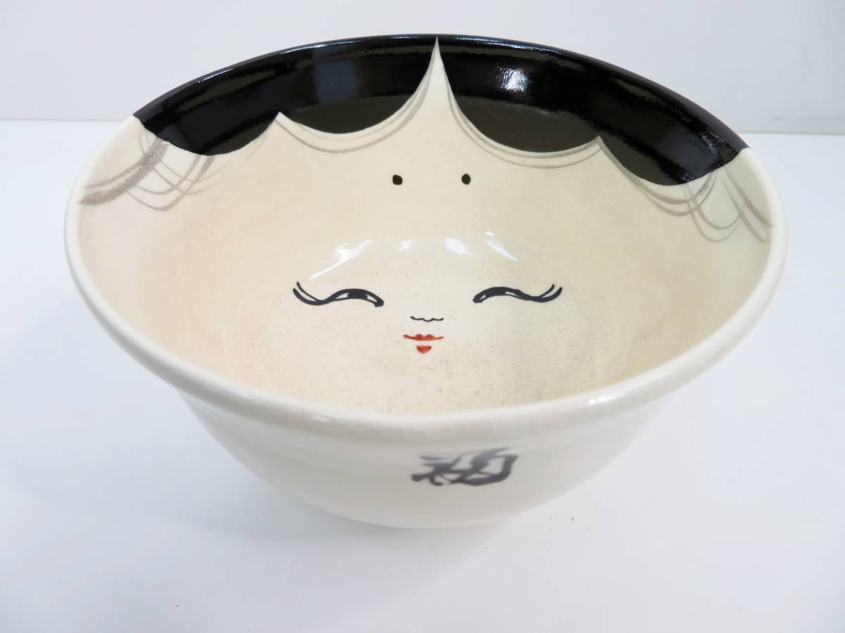 - 未使用品▲手塚大示造 京焼 茶器 茶道具 お福茶碗 お茶呑茶碗 手描き おかめ 銘あり 1客 管理2011 Z-2