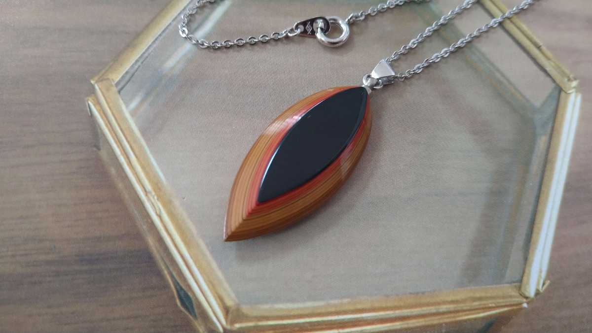 - □アーモンド型モチーフ・ネックレス□黒×オレンジ×ブラウンカラー□