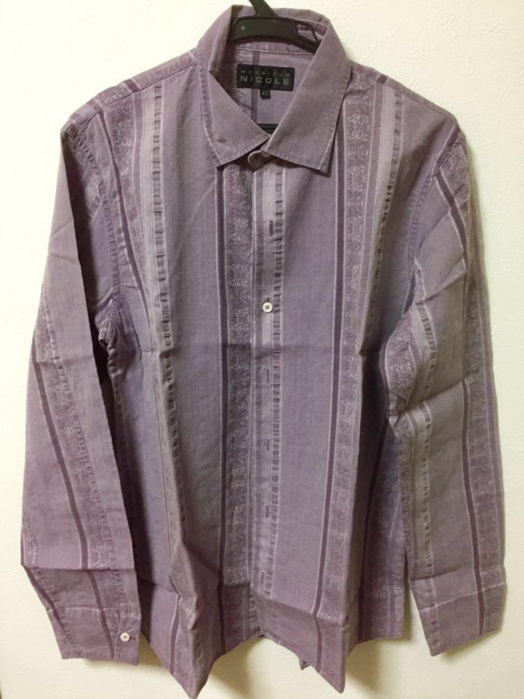 > 美品★ MONSIEUR NICOLE ムッシュ ニコル 長袖 シャツ サイズ48 メンズ パープル オシャレ 模様入り