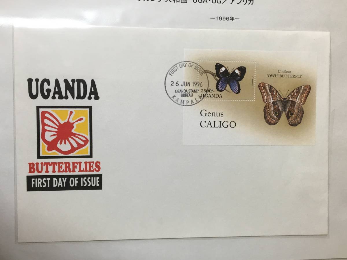 - 切手:昆虫・蝶/ウガンダ*1996年*初日カバー**