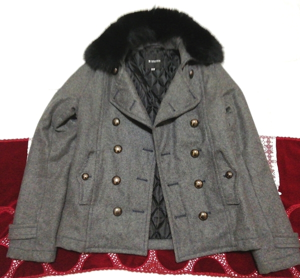 - グレー黒フォックスファーピーコート外套 Gray black fox fur pea coat cloak