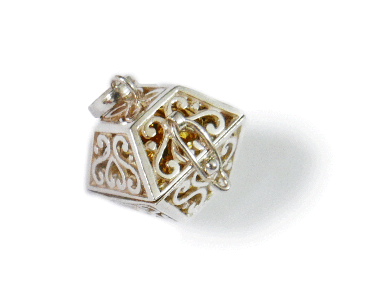 > ★送料無料★[Silver925]ハート模様のスクエア型のガムランボール★揺らすとシャラン♪癒しの音色のするヒーリングペンダント★