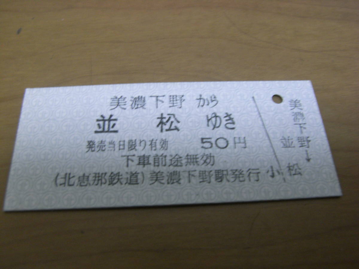 - 北恵那鉄道 美濃下野から並松ゆき 50円 美濃下野駅発行