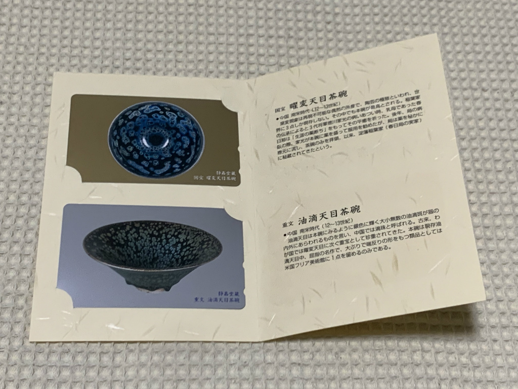- テレカ / 静嘉堂文庫美術館「国宝 曜変天目茶碗」「重文 油滴天目茶碗」テレホンカード(台紙付き 2枚組)未使用美品