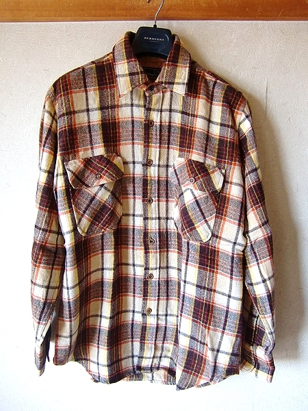 > 希少 ビンテージ☆JCPenney ウールネルシャツ☆Medium 茶系チェック 前ポケット2つ WOOL85%長袖シャツ