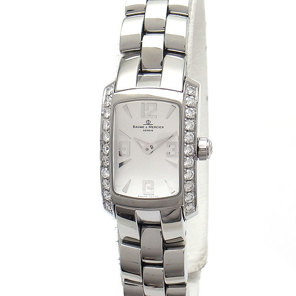 | コメント | 縦長フェイスをした「ハンプトン」。少し丸みを帯びたドーム型のガラスを採用しており、柔らかい印象を醸し出しております。両サイドのベゼルにはダイヤモンドをセッティングし、ラグジュアリーな印象。シルバー文字盤にはハッキリとしたインデックスを配し、同色のシルバーカラーながらも見やすい印象です。 当社指定時計修理業者にて外装仕上げ済みですが、落ち切らなかった深めの傷がケースサイドとブレスレットに御座います(画像参照)。また、ベゼルとラグにも小傷があり、裏蓋にも少し小傷が御座います(画像参照)。肉眼ではほとんど目立ちませんが、ガラスにも多少小傷が御座います(画像参照)。バックルエンドのブランドロゴが薄くなっております。以上を踏まえてBランクとさせて頂き、お買い得価格になっております。ダイヤにはカケ等は見られません。 レディースサイズ・クォーツモデル。 緑屋商品番号:5005365 | | 程度 | 中古Bランク | | 素材・色 | SS | | サイズ | フェイス幅17mm(リューズ除く) | | 腕周り | 16.5cm | | 付属品 | ギャランティーカードなし 箱なし |