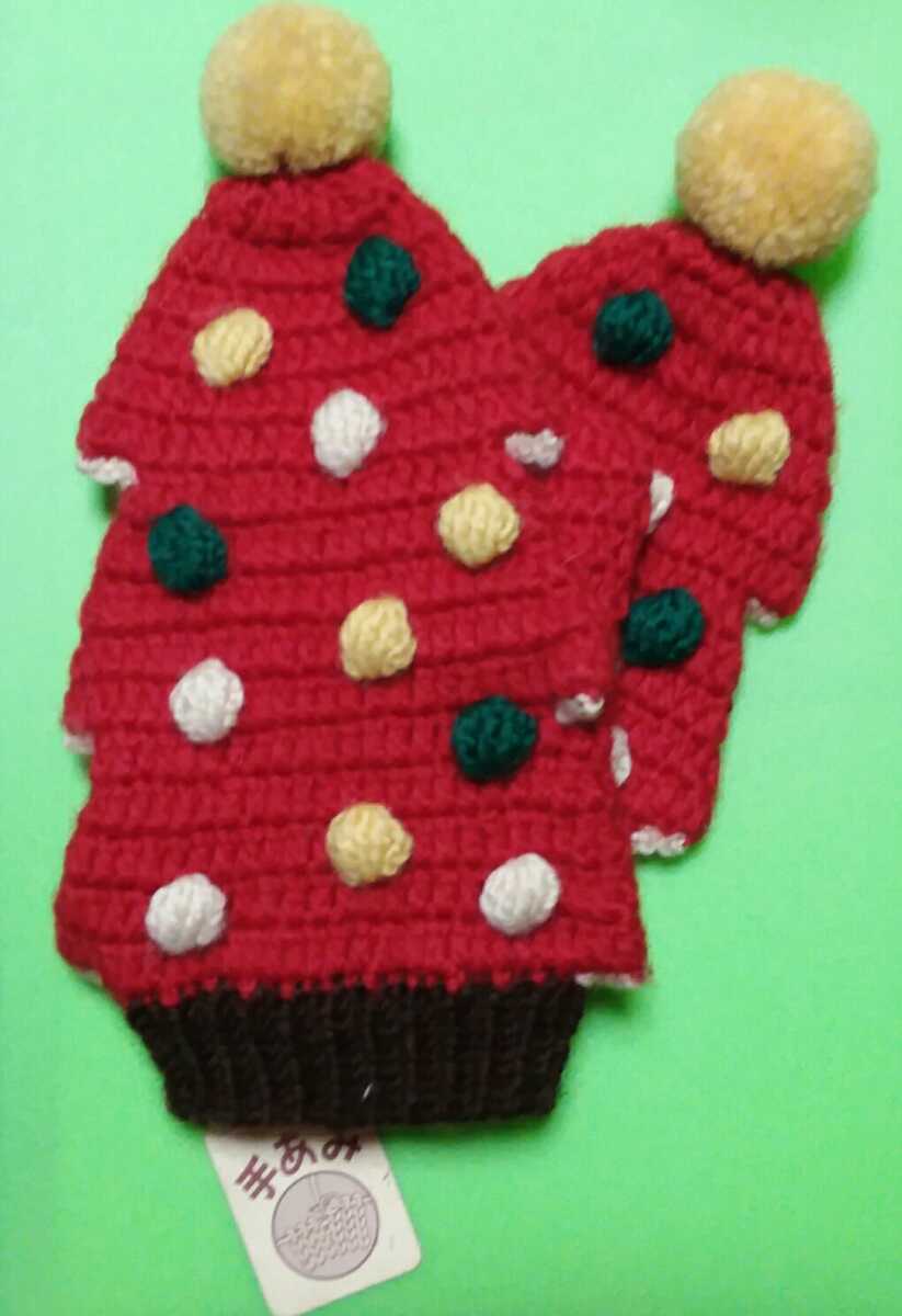 - ♪値下げ!★赤い クリスマスツリー★ミトン手袋★手編み★毛100%★女性用★かわいい★暖かい★Mitten gloves★Christmas Tree