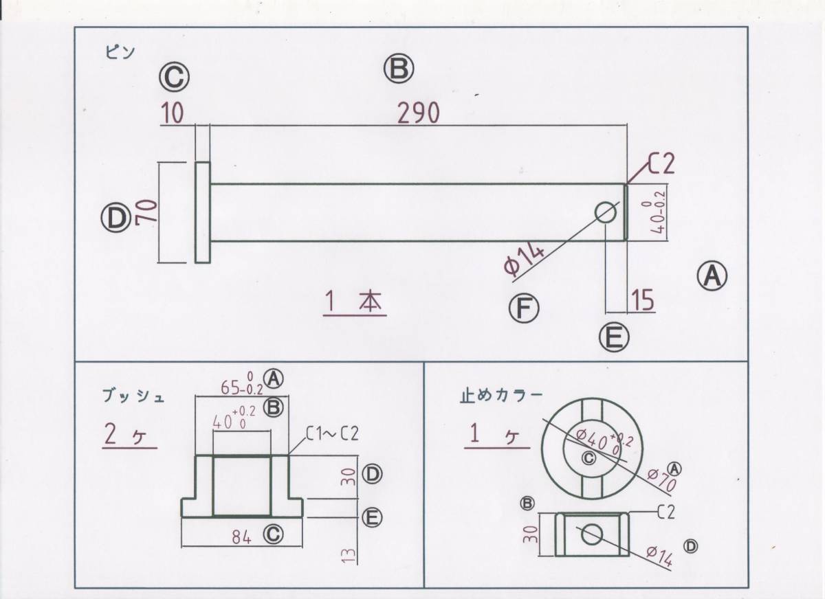 - NO.416 φ40用 バケットピン一式 バケットピン1本 ブッシュ 2個 止めカラー1個(リンクストッパー)