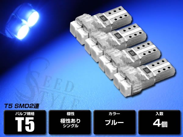 - T5 スティック 超高輝度 SMD2連 ブルー LEDバルブ 4個セット