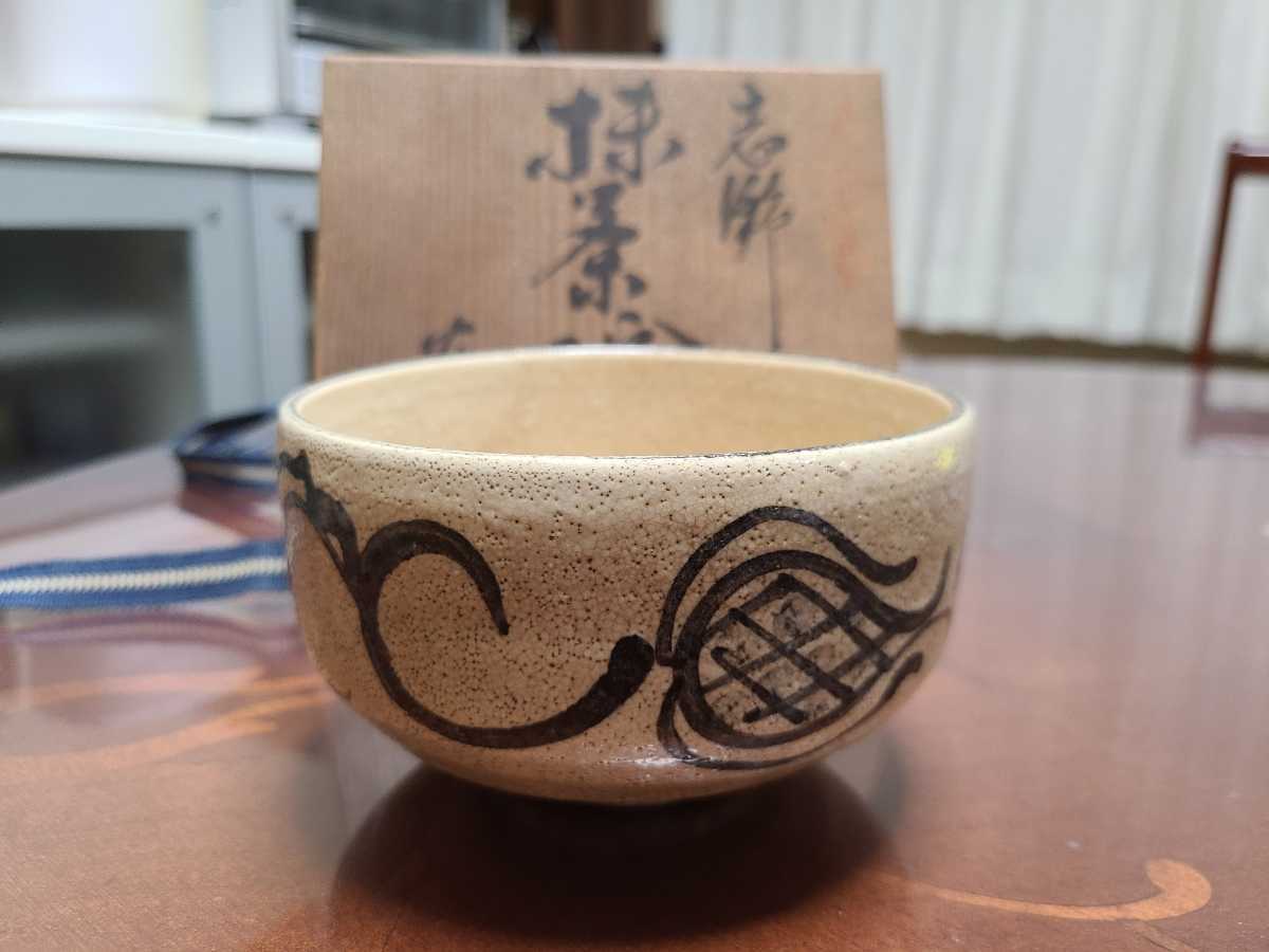 - 美濃茶碗、 志野焼、抹茶茶碗です。窯元富山作と書いて有ります、年代不明 共箱合っていると思います。