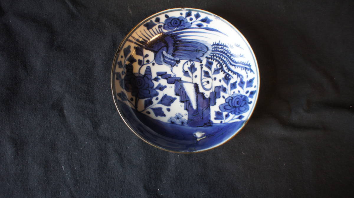 - この大胆な図柄、激しい呉須 素晴らしい絵付けの中国南方窯の皿 覆輪付き