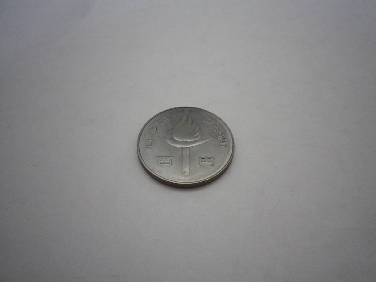> 昭和47年1972「札幌オリンピック冬季大会100円硬貨」【汚れ品】【送料無料】「熊五郎のコイン」00810005