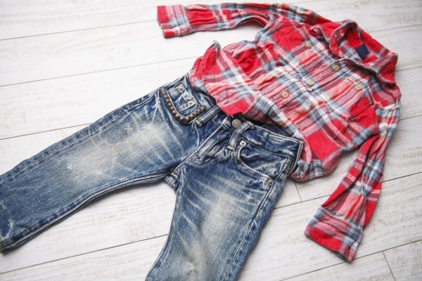 - 定価27000en 激レア ヒステリックグラマー JOEY HYSTERIC ダメージ加工 スマイル キッズ デニム 約80 XS