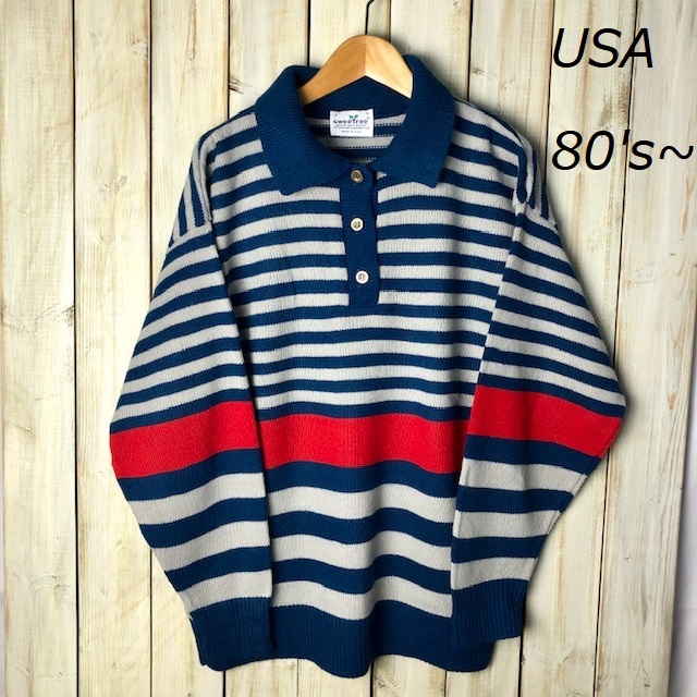 - USA古着 80s USA製 ボーダーニットセーター アクリル L程度 オールド ヴィンテージ アメリカ古着 ●85