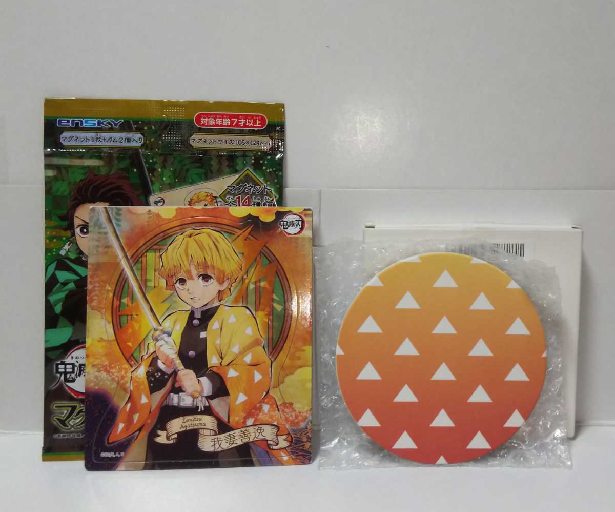 - 匿名配送 鬼滅の刃 我妻善逸グッズ2点セット(マグネットコレクション・鬼狩り 白雲石 吸水コースター) 鬼滅ノ刃 散り三角模様 磁石 敷物