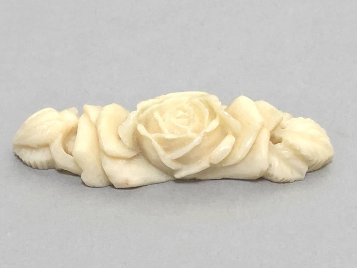 - TF28 美品 帯留め用 ブローチ用 ルース 本珊瑚 サンゴ 細密細工 薔薇彫刻 幅5.1cm 重11g 和装小物