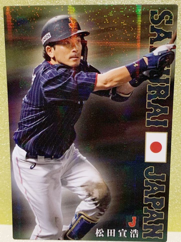 - 野球 侍ジャパン チップス カード 松田 宣浩 三塁手 スタメンカード SJ-05 2020 侍ジャパン キラカード プロ野球チップス カルビー Calbee
