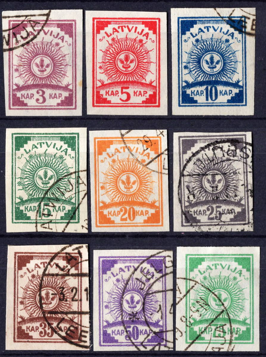 - ★1919年 ラトビア- 「紋章」9種完 (未使用1種+使用済8種)(SC#25-33)★OD-272
