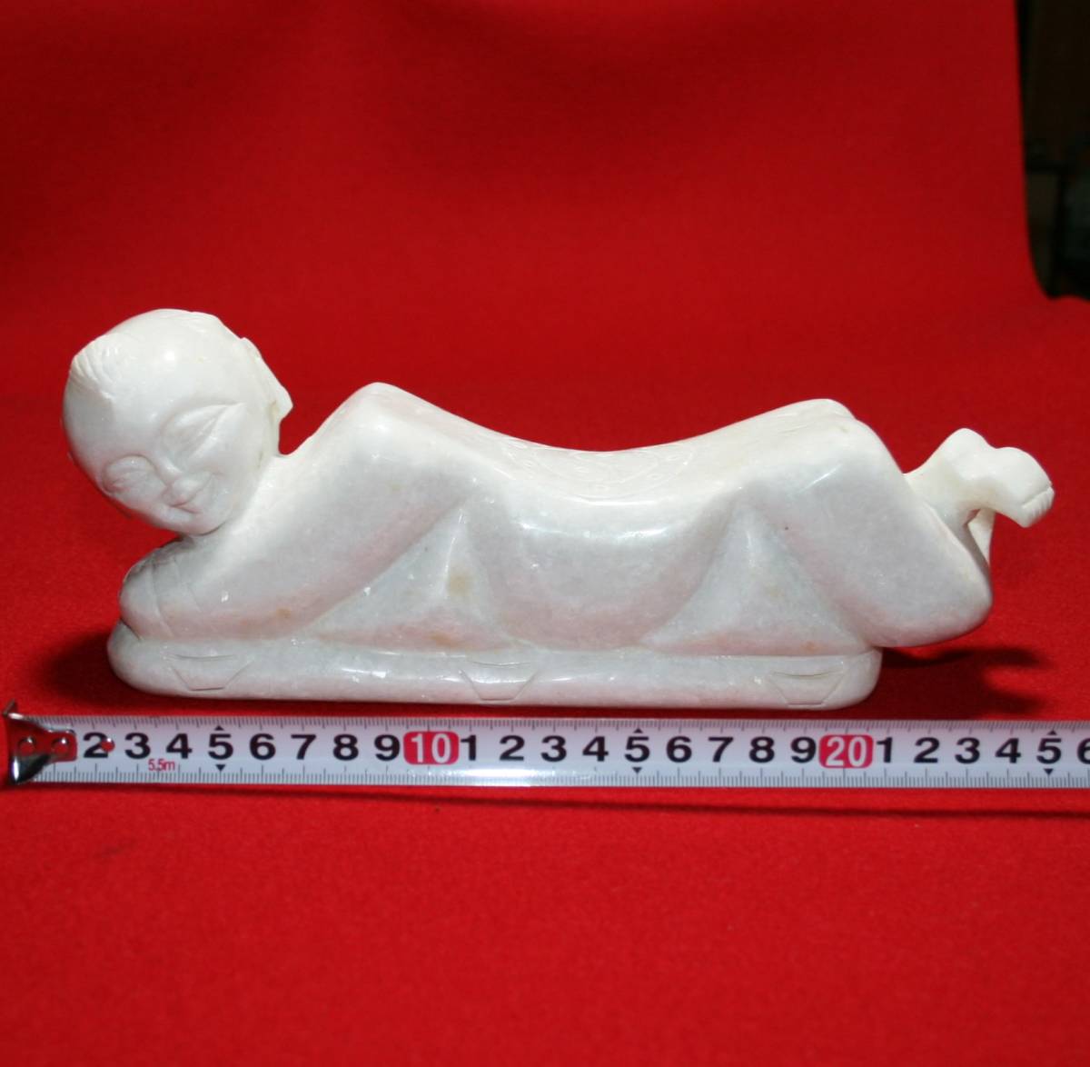 - 【工芸品】 唐子の枕 彫刻 天然石 大理石 枕 オブジェ 置物