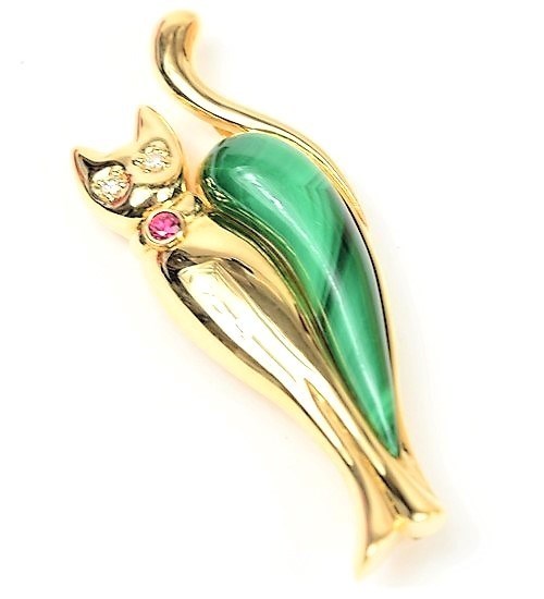 - 【美品】タサキ K18 ダイヤ ルビー マラカイト ブローチ