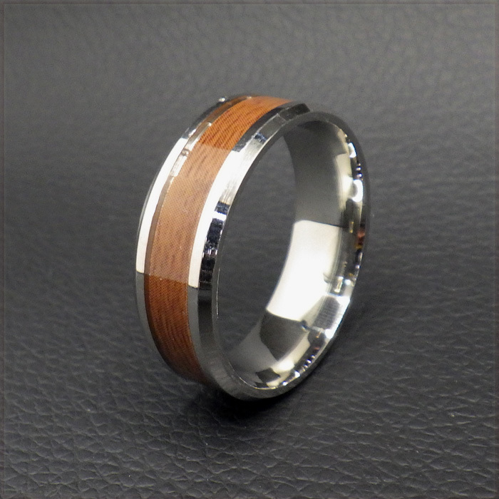 - [RING] 316L SS WOOD ウッド 木目柄 サンドウィッチ レジンコーティング サイド テーパー加工 ステンレス 8mm リング 13号 【送料無料】