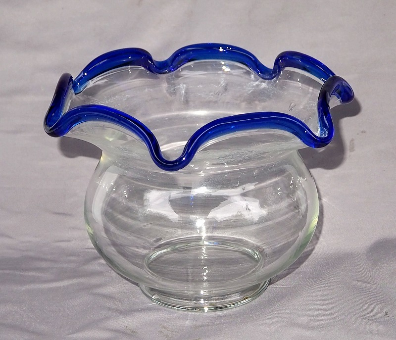 - 昭和レトロ 金魚鉢 ガラス製 青フチ 金魚・メダカ入れ アクア