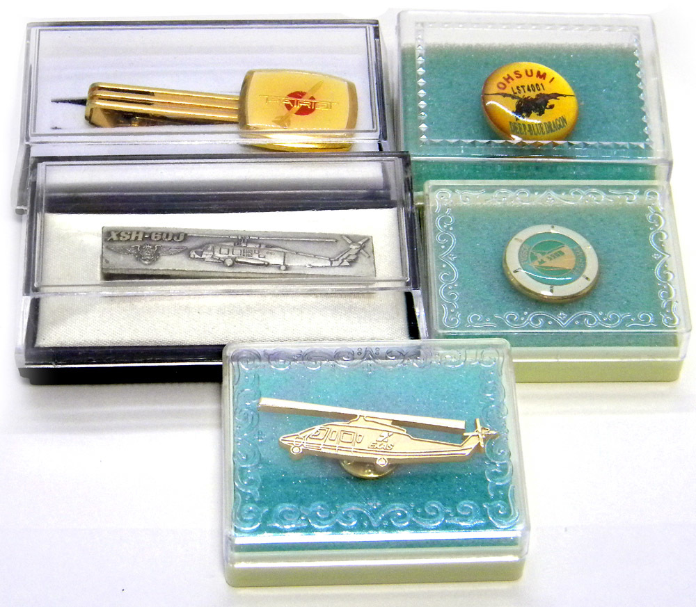- ★ ネクタイピン・ピンバッチ 5点セット / ケース付き / PATRIOT・XSH-60J・KASHIMA TV3508・OHSUMI LST4001・EXAS ヘリコプター