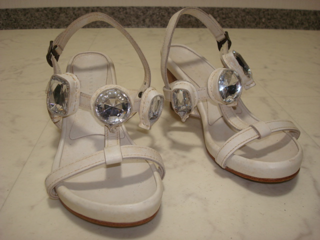 - ■ sunaokuwahara スナオクワハラ 立体感あり 特大ストーン ビジュー■ レディース 本革 レザー サンダル ホワイト 白銀 Mサイズ 36 23.0cm