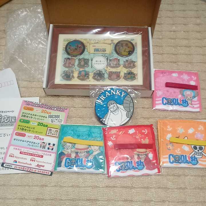 - 即決! 当選品 日本ハムワンピース ピンズ11種セット&コースター&クーリッシュカバータオル(全4種) 新品未使用未開封