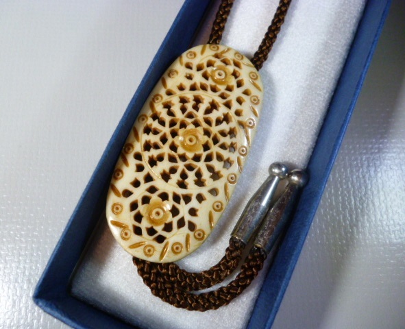 - Θ 透かし細工 ループタイ Θ 牙? 歯? 角? 鯨? マンモス?