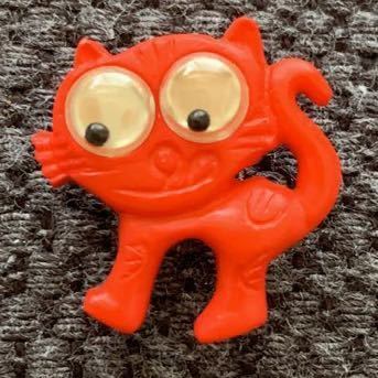 - 昭和レトロ ボタン ハンドメイド ノスタルジック コレクター ヴィンテージ デッドストック 80's 入園入学準備 手作り 手芸 へんてこ 猫 橙