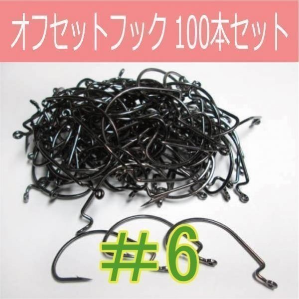- 【 送料無料 】オフセットフック Offset hook #6 100本セット ワームフック ワーム針 サイズ9種類(#6~5/0)▲