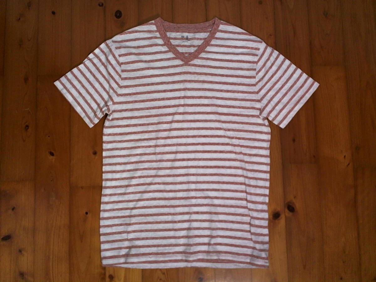 - ★微難有☆ギャップ★GAP★Vネック半袖Tシャツ コットンTシャツ M 白 薄赤 ボーダー