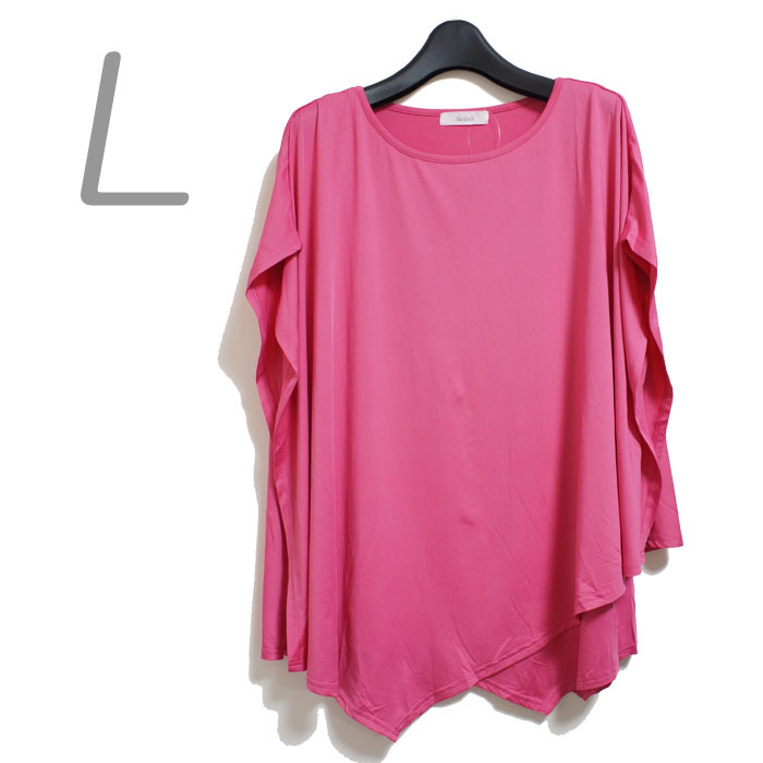- ●新品/カットソー/ピンク系/L/アシンメトリー裾/無地/レディース/ストレッチ●f8355