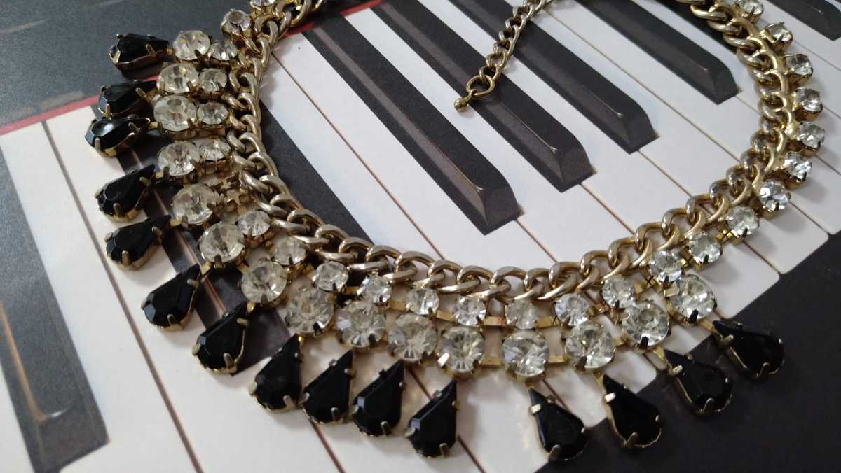 - □訳あり□しずく型黒ビジュー×クリアストーン×ゴールドカラーチェーン・ネックレス□