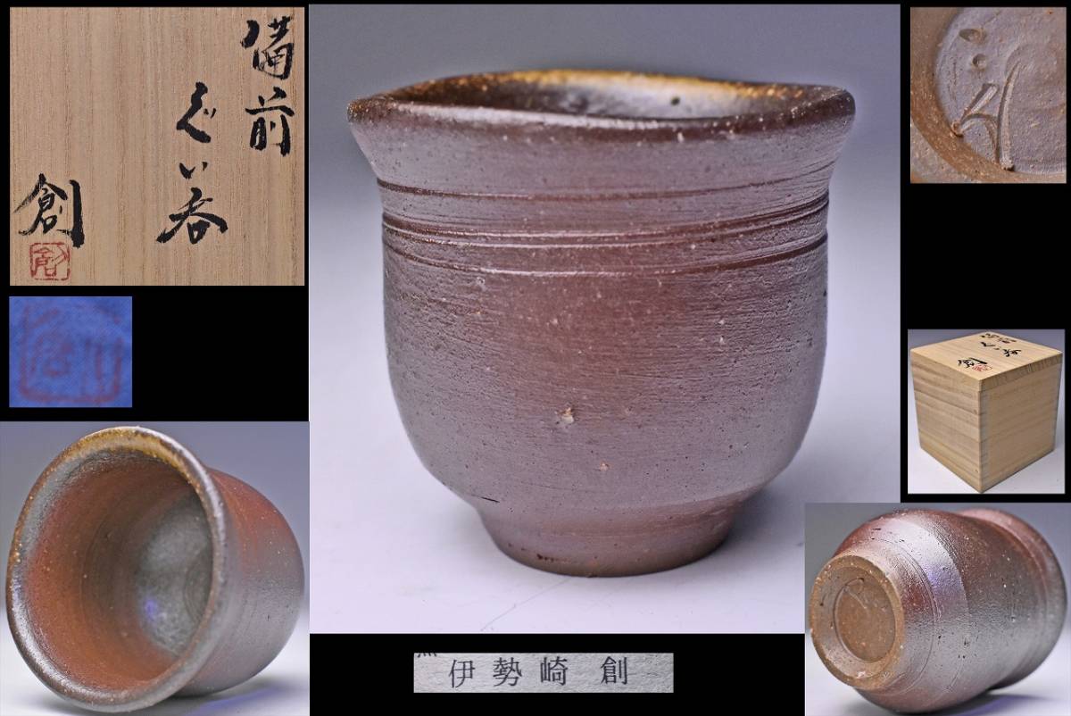> 伊勢崎創 ★ 備前 ぐい呑 ★ 共箱 共布 栞 ★父:伊勢崎満 / 師:山下譲治 ★検 人間国宝 伊勢崎淳 伊勢崎陽山 伊勢崎競 伊勢崎紳 伊勢崎卓