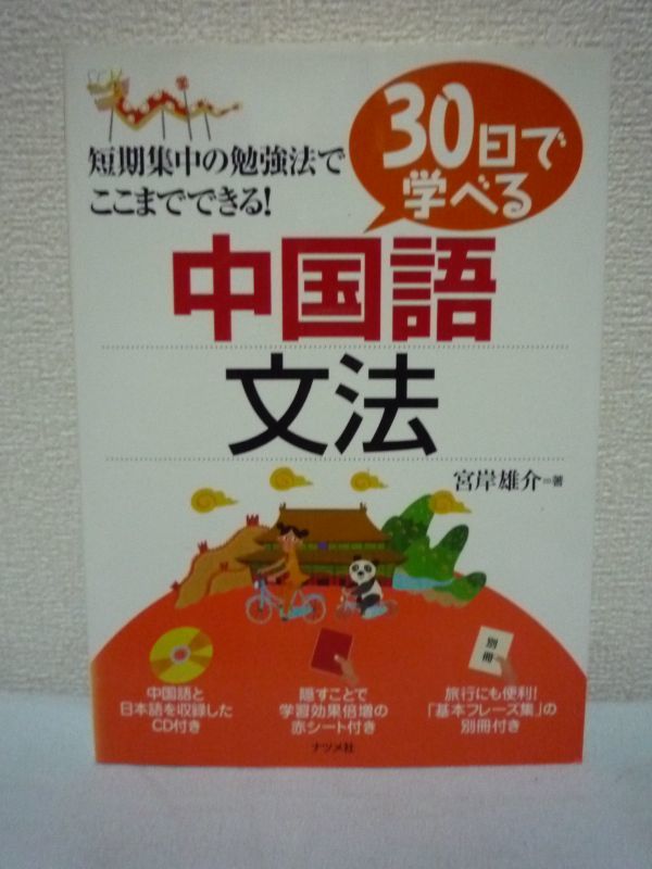 - 30日で学べる中国語文法 ★ 宮岸雄介 ■ CD有 別冊有 発音 漢字 受け身構文 動詞述語文 語気助詞 初心者の方の聞き取りの練習に最適 読み方