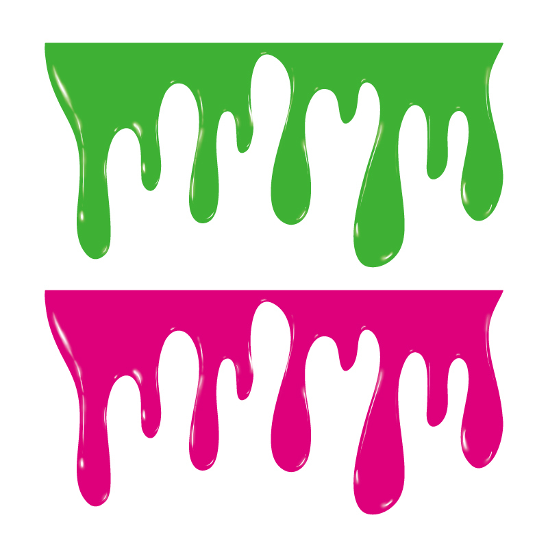 > 液体 ステッカー 2枚セット 緑×ピンク インク インクスプラッシュ 液だれ風 垂れてる風 液だれ スプラッシュ 防水 屋外 おもしろ だまし絵