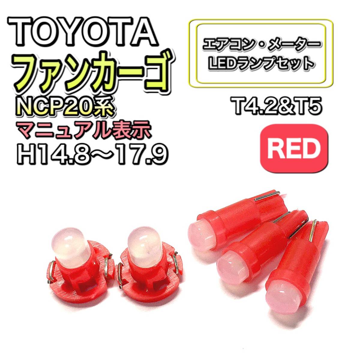 > ファンカーゴ NCP20 マイナー後マニュアル表示 打換え LED エアコン・メーターランプセット T4.7T5 T4.2 T3 ウェッジ トヨタ レッド