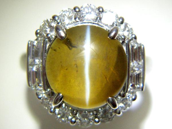 - 【宝石屋本舗】絶品・7.5ct天然クリソベルキャッツアイPTリング