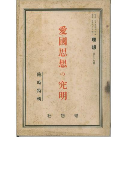 - 愛国思想の究明■理想・臨時特輯号/昭和12年10月号