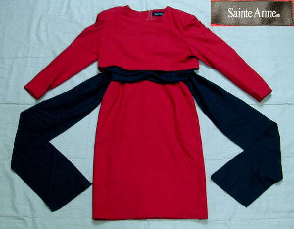 - ■美品:Sainte Anne上下別に見えるリボン付ワンピース 9号 DmD41