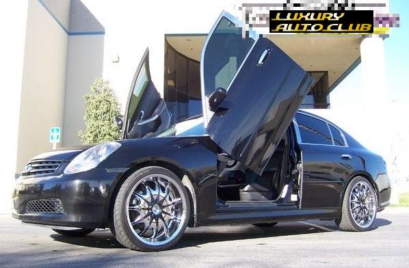- スカイライン イニフィニティ G35 V35 セダン ガルウイング シザースドア シザーズ エアロ ランボドア 安心米国製 外装カスタム 専用設計