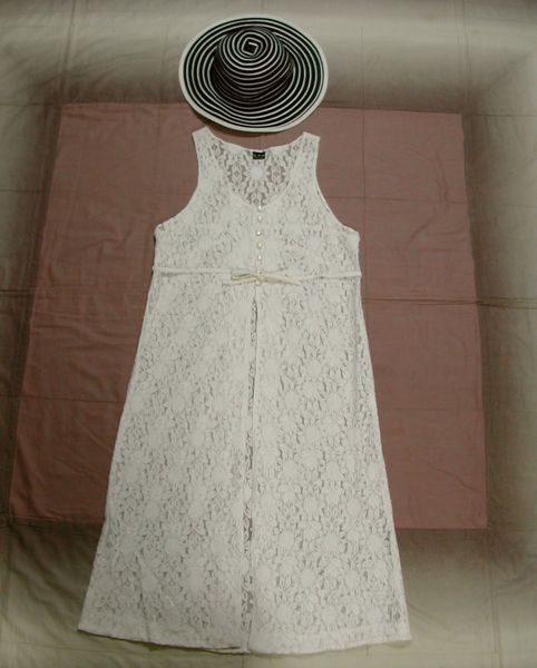 - ■美品:SCOPONEレースのロングベストとつばの広い帽子 M DmK76