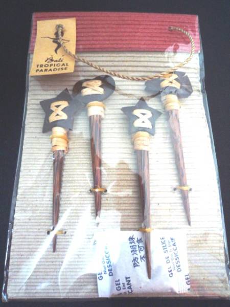 > ■□アジアン雑貨 フルーツピック 4本セット オードブルピック 木製 楊枝 バリ島 カトラリー 果物用楊枝 インドネシア □■