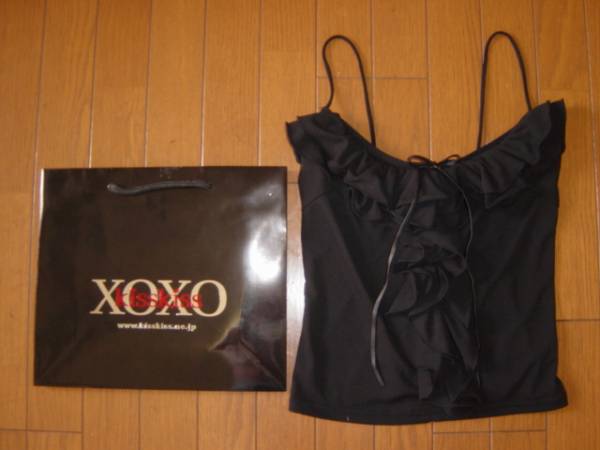 - ◆美品XOXO◆キスキス シフォン Wフリル リボン キャミソール黒