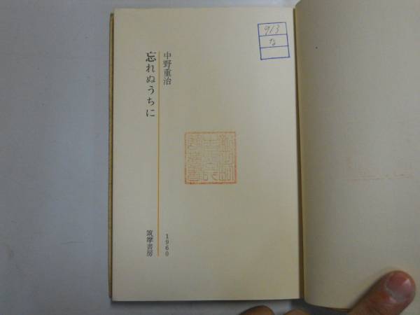 ●P006●忘れぬうちに●中野重治●筑摩書房●即決