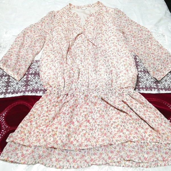 - 花柄ピンクシフォンネグリジェワンピースチュニック Flower pattern pink chiffon negligee tunic dress