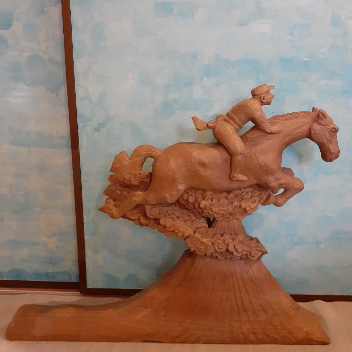 - 彫刻 木彫り オブジェ 天馬 富士山 銘あり 約70.5cm×56cm×12cm